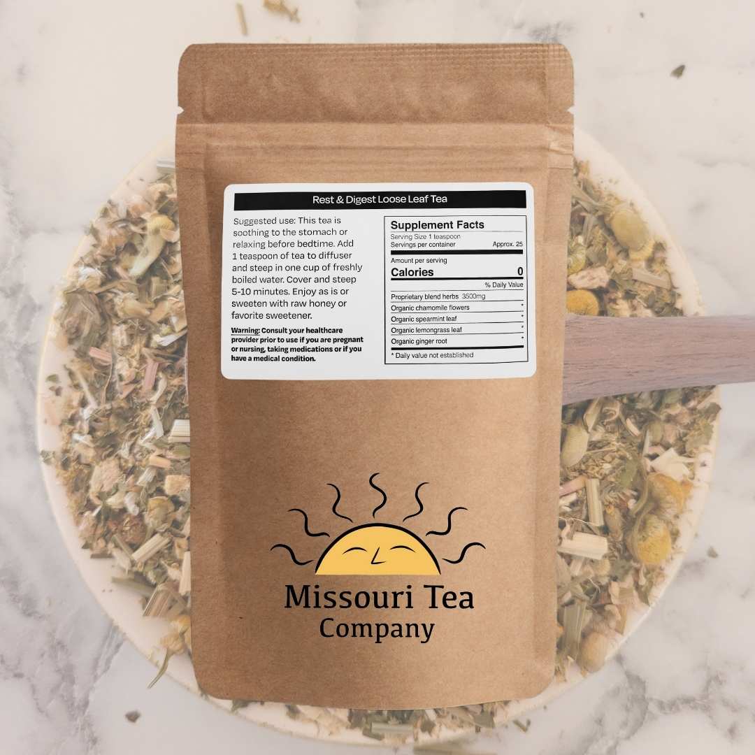 2 oz of Rest and Digest Herbal Tea is made from the finest quality Organic Herbs blended for soothing the stomach or relaxing right before bedtime. This Organic Tea Blend is Non Caffeinated and calms the Mind, Body and Spirit. The Blend is an old recipe from Grandma and consist of Chamomile, Spearmint Leaf, Lemongrass Leaf and Ginger Root